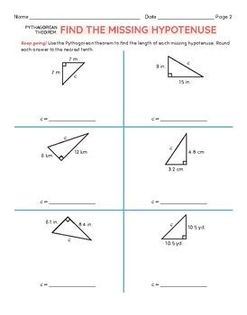 C 2 = a 2 + b 2. This worksheet contains a set of numbers that students must use the pythagorean theorem to find the missing length of a right.