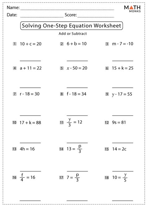Solving Equations Using Addition And Subtraction Worksheets